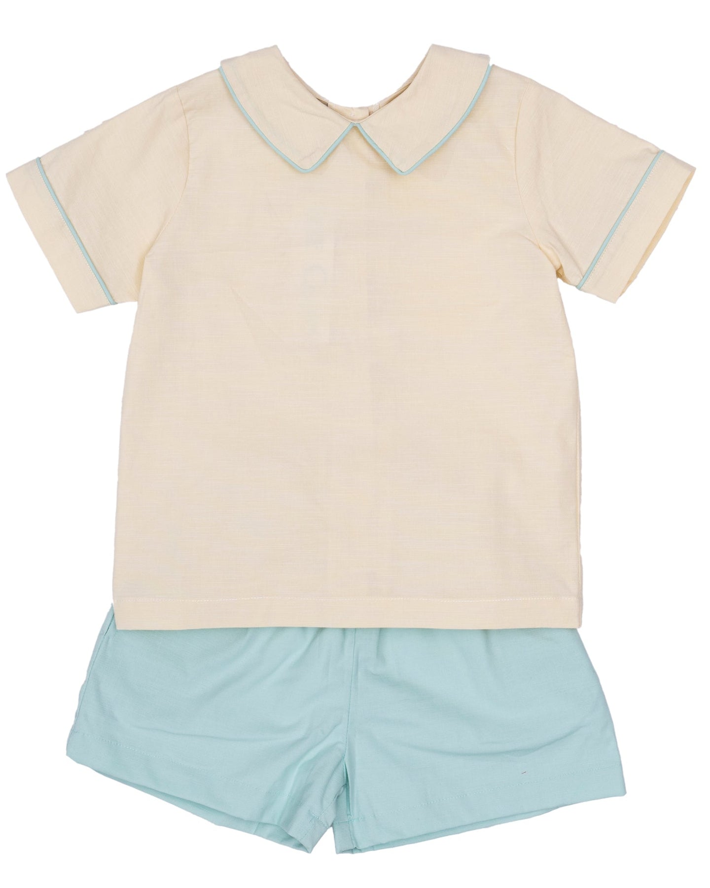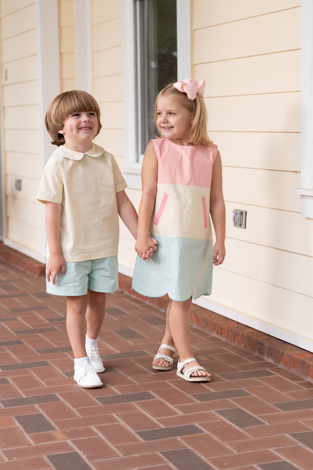 Let the Pierce Yellow Sorbet Short Set brighten your warm-weather rotation with this cheerful two-piece set. The soft yellow and mint pairing delivers effortless charm, while the classic silhouette keeps things timeless. Crafted for comfort and style, this set proves that playful color doesn't require complicated cuts.