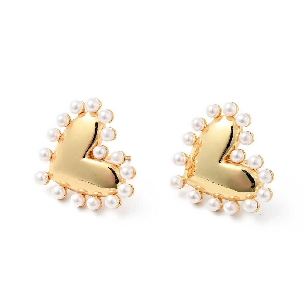 Rack Plating Brass with Acrylic Beads Stud Earrings for Women, Cadmium Free & Lead Free, Heart, Real 18K Gold Plated, 18.5x21mm, Pin: 0.8mm