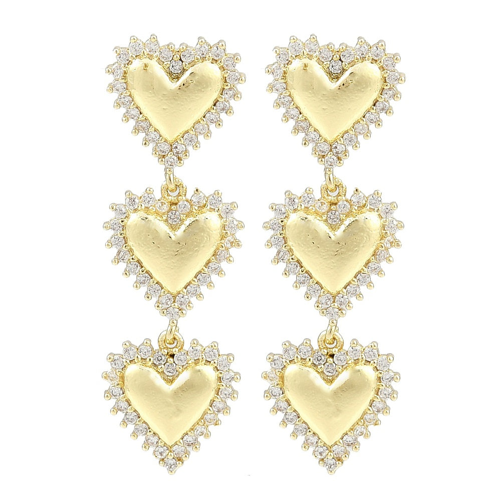 Rack Plating Heart Brass Pave Clear Cubic Zirconia Stud Earrings, Long-Lasting Plated, Lead Free & Cadmium Free, Real 18K Gold Plated, 32x10mm