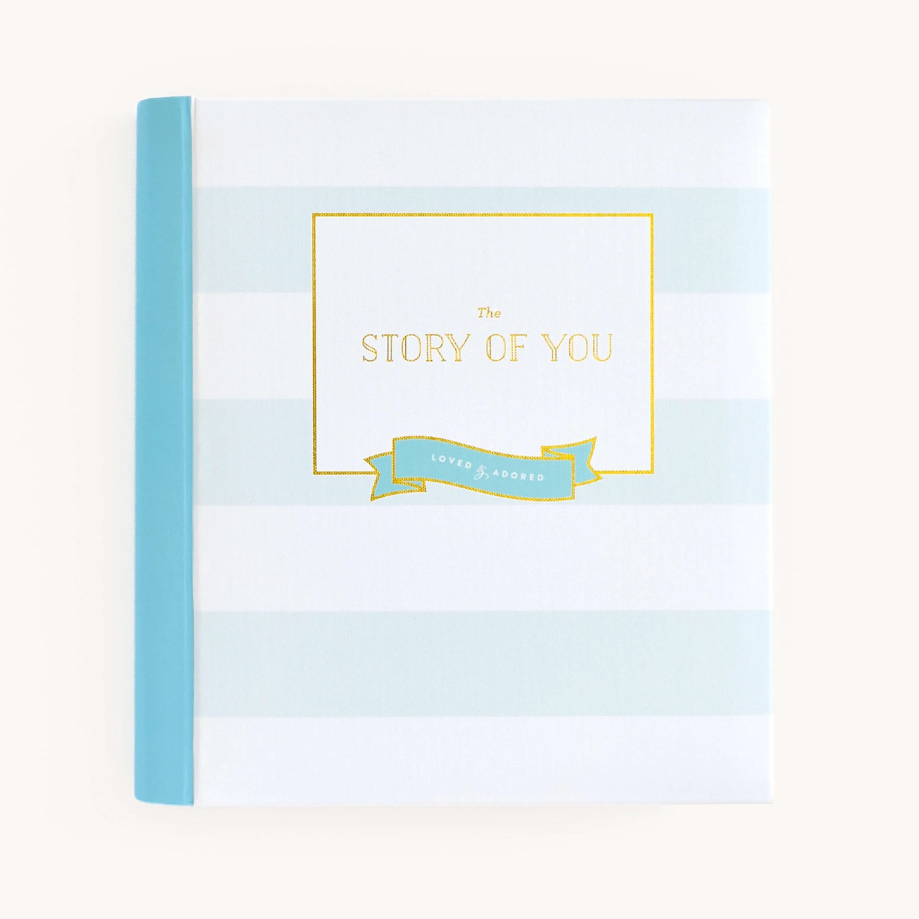 A classic and thoughtful baby book perfect for documenting "The Story of You" for your little one. Created with love, this book offers a balance of guided writing space and open space for moments and photographs. It features 64 pages with gold foil detailing and a textured cushioned hard cover. Customize your baby book even more with additional page packs.