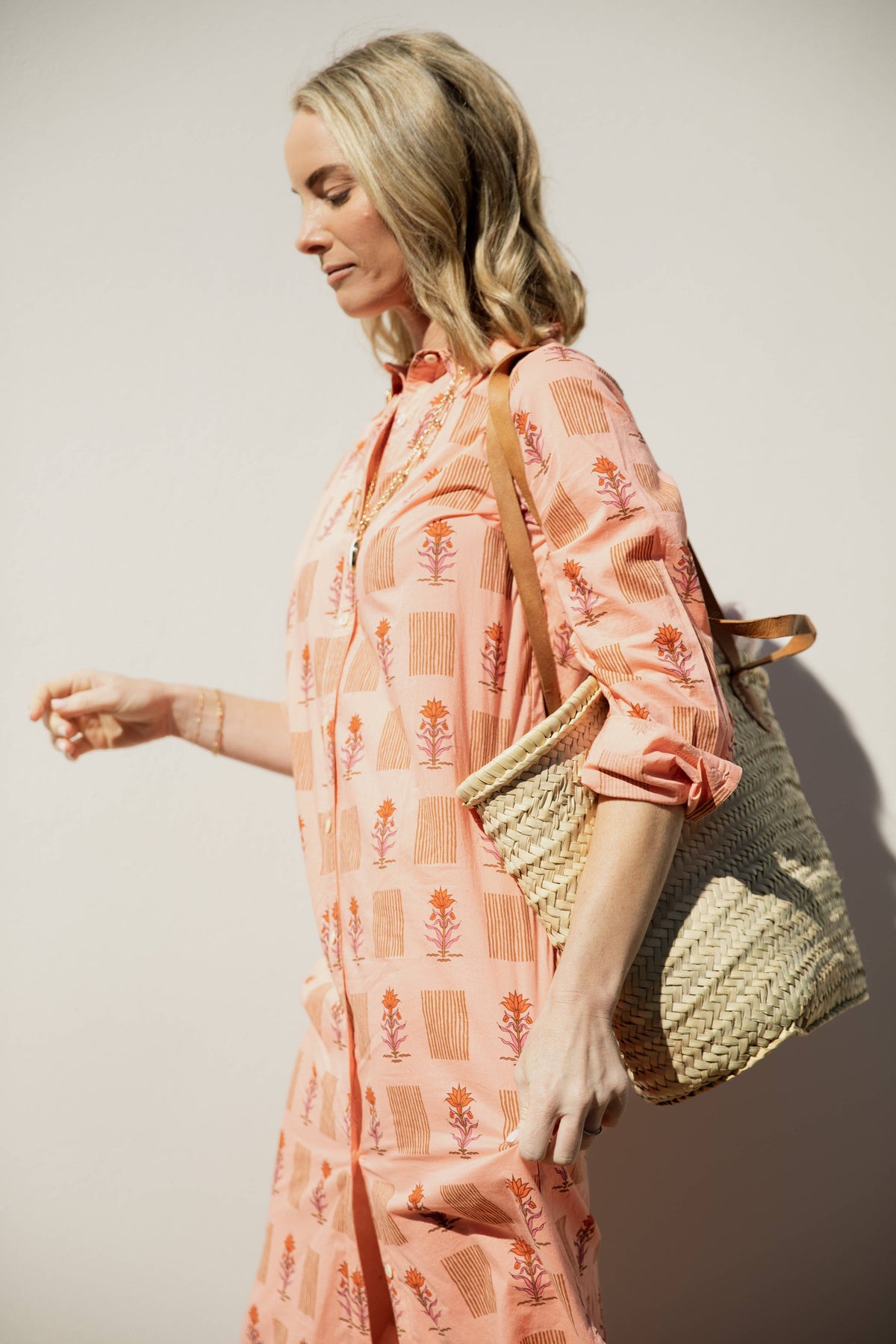 BECASA - Cotton Shirt Dress - Coral Bloom: XL