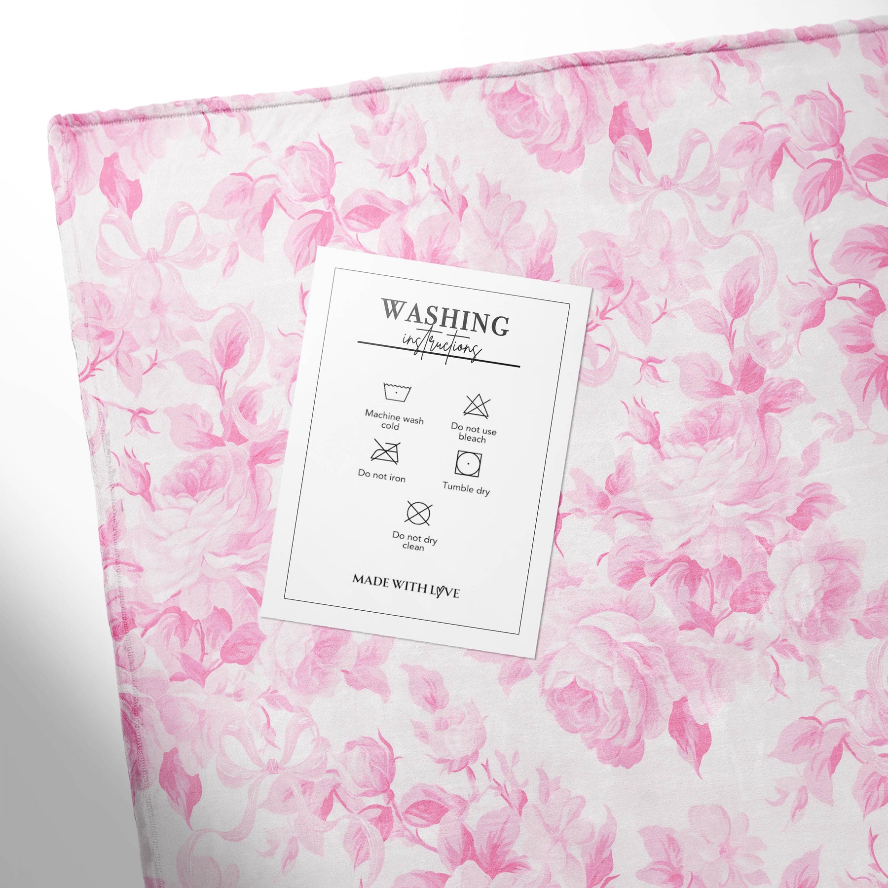 Boutique Monogram - Fancy Love Pink and Blue Roses Collection Throw Blanket: Pink Roses / Sherpa White / XL 60"x80