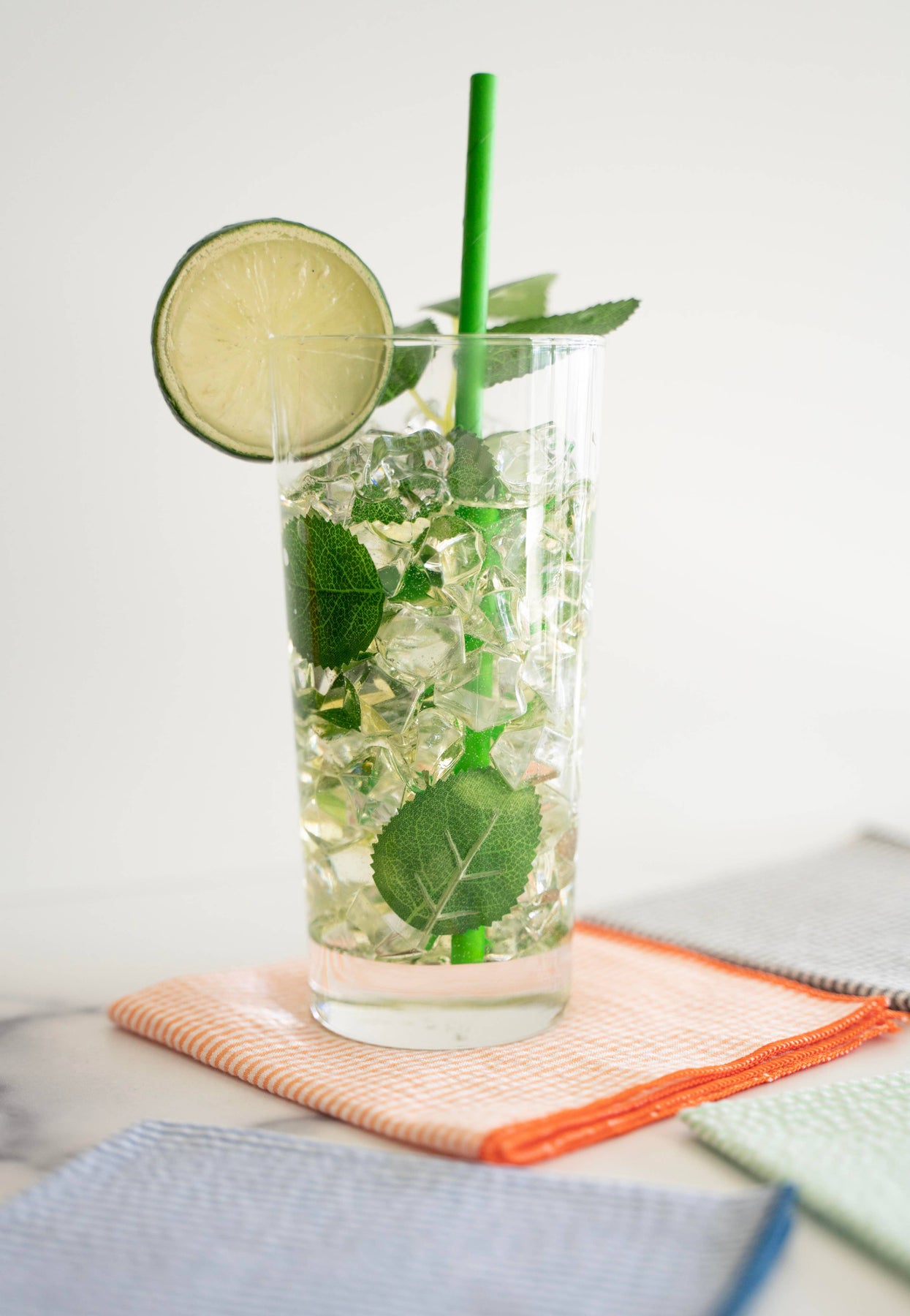 *If you don't see a color listed, please send us a message. Our seersucker cocktail napkins are perfect to pair with a bottle of wine, use as appetizer napkins, or in a lunch box. Bright and cheery, and so easy to care for. No ironing! This listing is for our seersucker cocktail napkins in the 10inch size. Set of four. Cotton/poly blend finished with a rolled edge.
