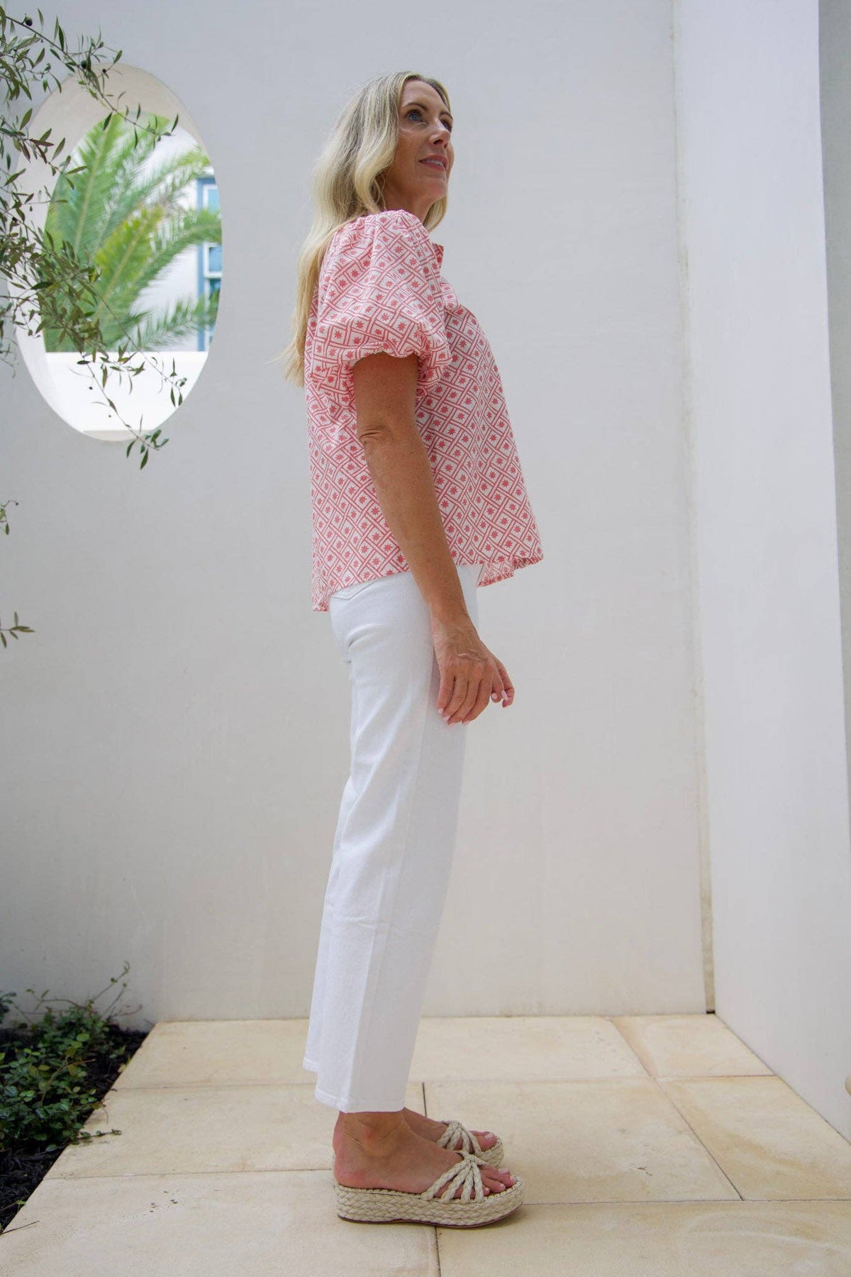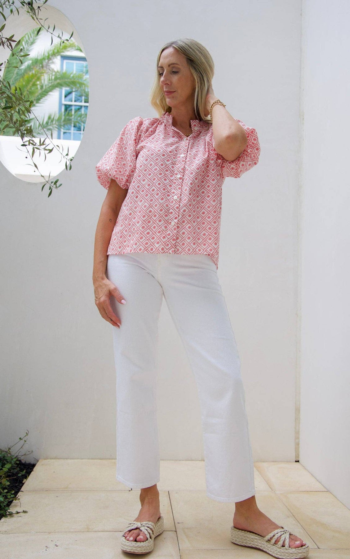STYLE TIP: The Daisy Blouse is one of our most popular silhouettes, featuring flattering puff sleeves and bringing timeless appeal to your wardrobe. This blouse is designed for effortless elegance with a touch of feminine charm. The cotton gives enough structure for a tailored look while being breathable all at the same time. Whether dressed up or down, worn tucked or untucked, this versatile blouse offers a signature style that cannot be rivaled and makes it a must have in any closet!