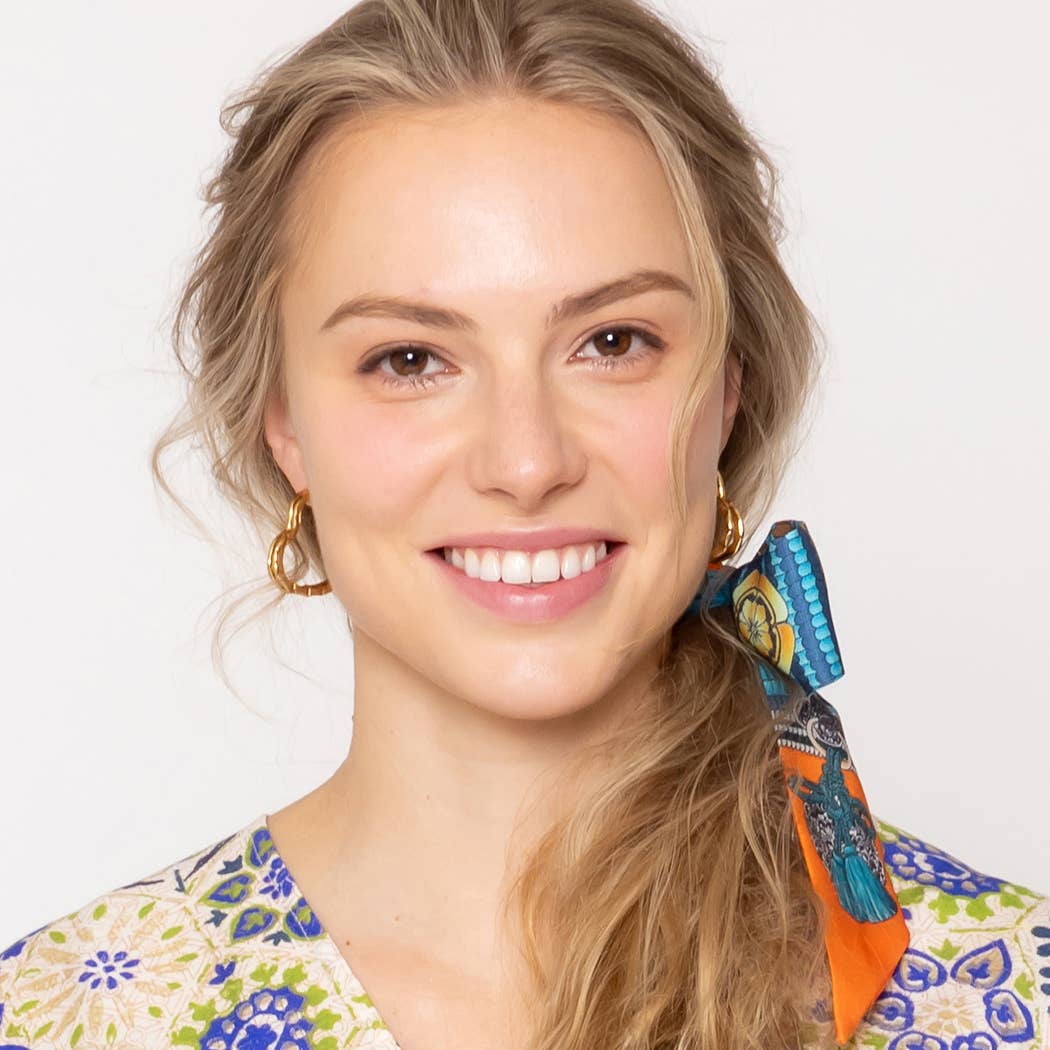 Fashion City - Tassel Pattern Print Light Weight Twilly Scarf : NVY / ONE SIZE