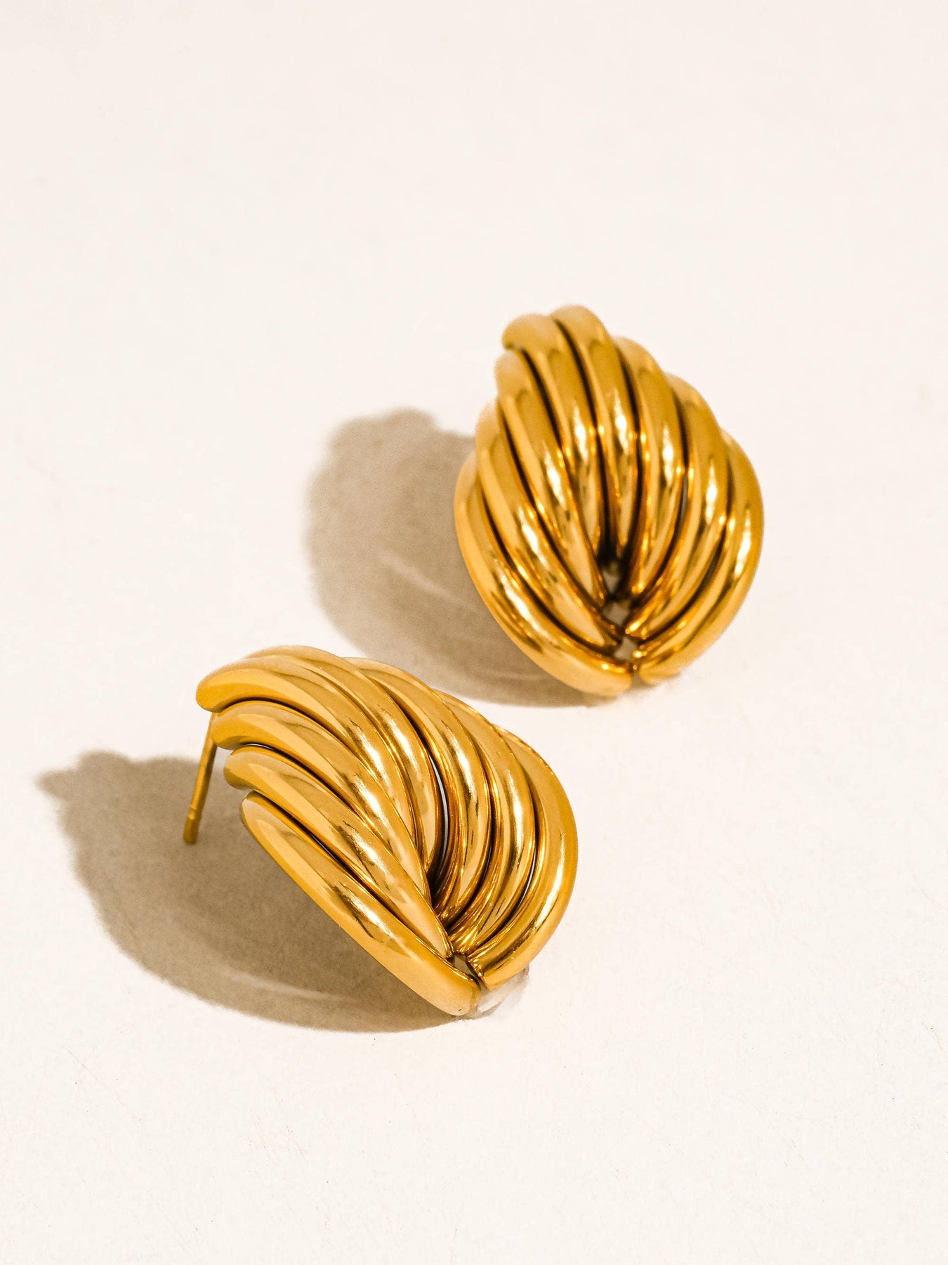 18K Gold Non-Tarnish Layered Teardrop Hoop Earrings 18K Gold Plating Stainless Steel Measurement (L x W inch): 0.96 x 0.73 - Lead-free, Nickel-safe - Hypoallergenic - Water Resistant