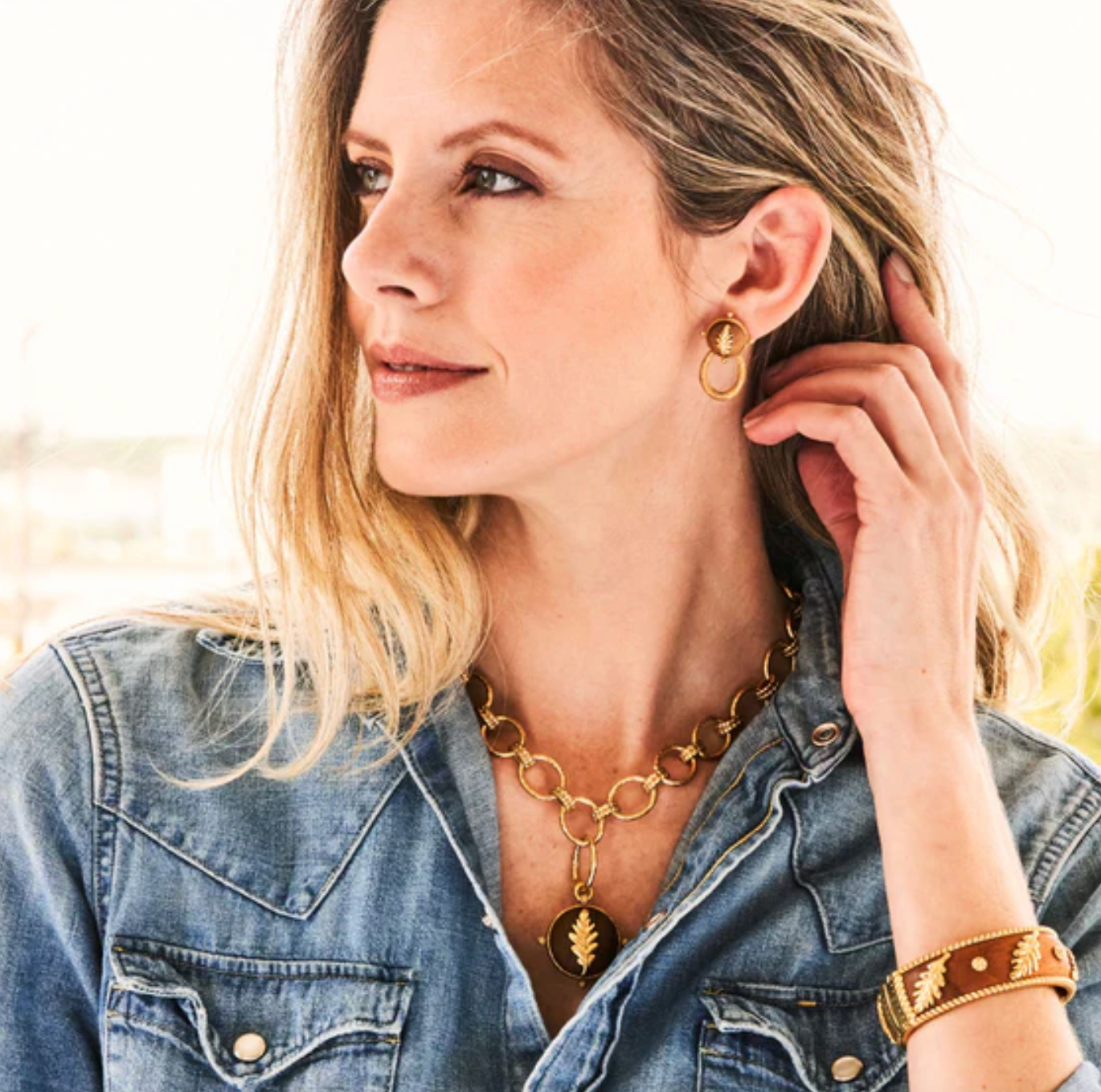 Always avoid contact with water, lotion, perfume, chemicals, perspiration, and make-up as these can alter the jewelry finish. As each piece is entirely made by hand with natural materials, they will all vary slightly and carry the soulful imperfections of the artisan who made it.