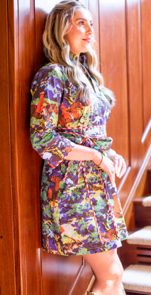 From countryside to cocktail hour, the Foxhall© dress tells a story in every stitch. Inspired by the stately art of the English hunt—riders in their finest, hounds in stride, and the beauty of the rolling countryside—this original design brings heritage and artistry to life. The vision began with a hand-painted mural from the early 1900s, reimagined with a modern twist to create a print that feels both timeless and fresh.