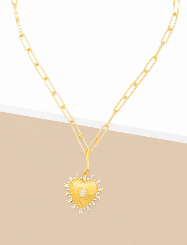 HEART PENDANT LINK COLLAR NECKLACE- GOLD/CLEAR