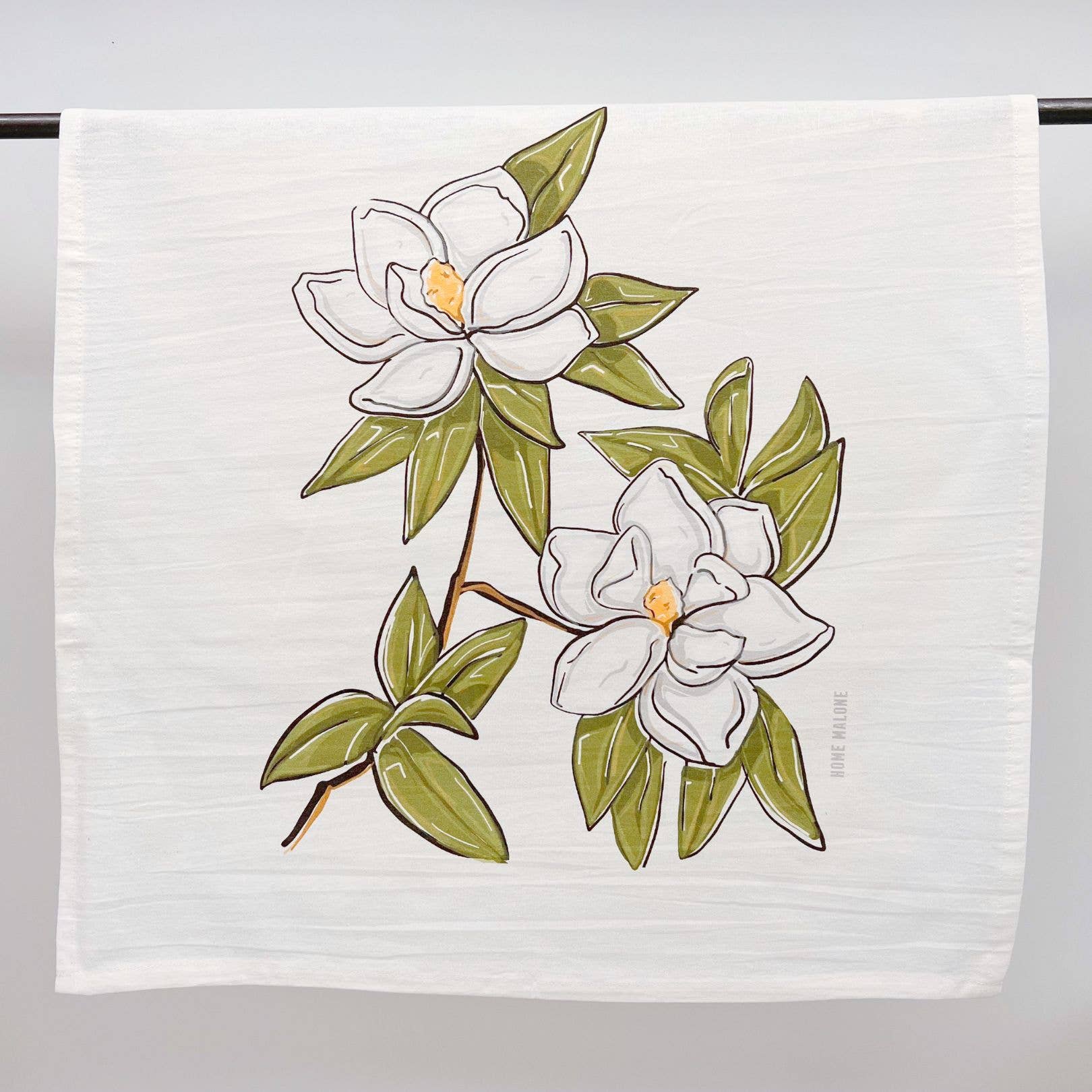 Home Malone - Magnolia Dish Towel - Southern Floral Decorative Kitchen: With Towel Band