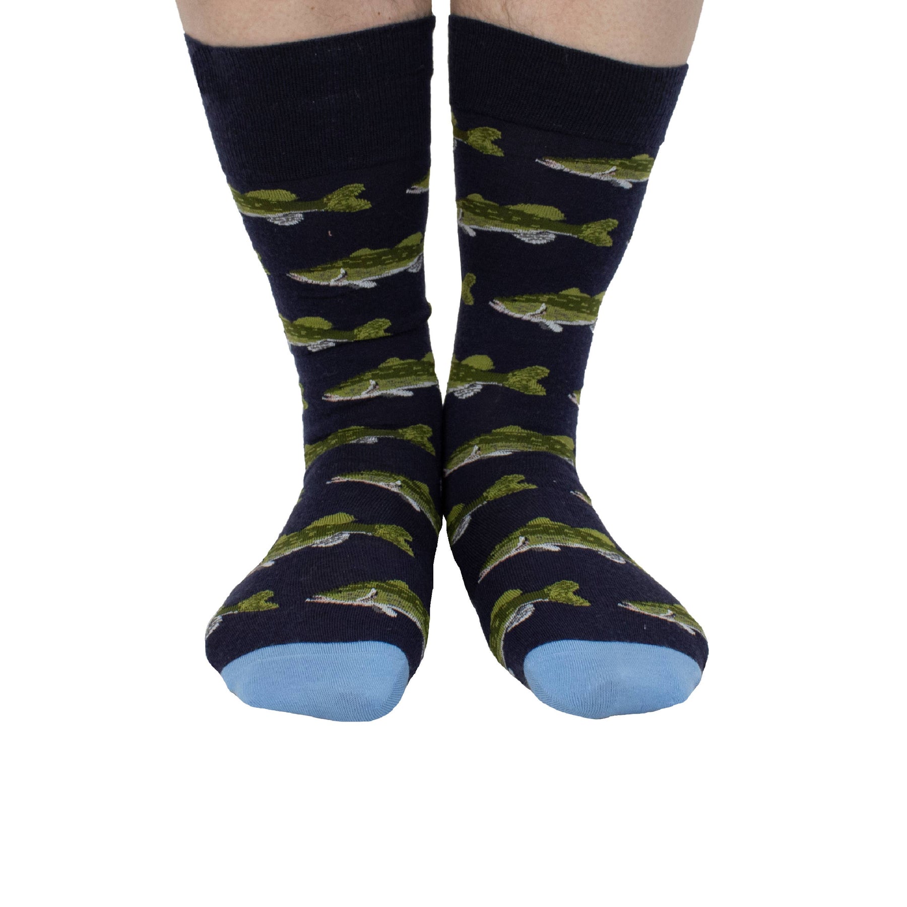hunting feet - EXTRAFINE MERINO WOOL LARGEMOUTH BASS FISH IN NAVY