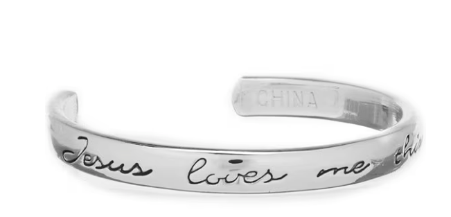 Express your faith with elegance wearing the Gold Jesus Loves Me Cuff. This striking piece combines meaningful symbolism with a sleek gold finish, making it a perfect everyday reminder of love and devotion. Its adjustable design ensures a comfortable fit, while the polished look adds a subtle yet powerful statement to any outfit. Ideal as a heartfelt gift or a personal treasure.