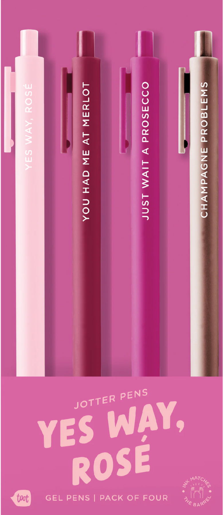 We have Jotter Pens and we did them WRITE with super fun sayings and the perfect 4 color mixes! The soft touch barrel surface and fine-point gel tip will make these pens your new favorite. Did we mention these pens are TIKTOK famous?! Yep, that's WRITE! All jotters write in ink that matches their barrel expect for navy, black, white, grey, and the metallics!
