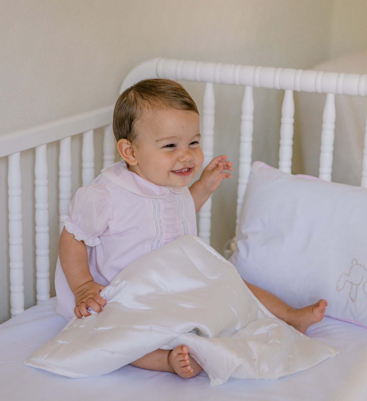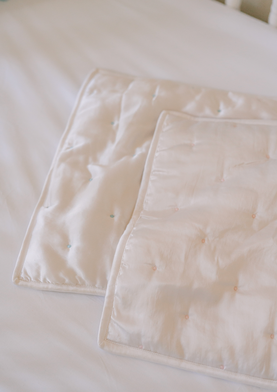 If you are searching for the perfect cuddly companion, you’ve found it in our Baby Satin & Fur Lovie. Crafted from a blend of silky poly satin and plush synthetic fur, this lovie is filled with soft poly fill for maximum comfort. It is delicately quilted with embroidered dots and adorned with satin binding. Complete with a convenient loop on one corner, it's perfect for attaching to strollers or diaper bags. Measuring 14" x 14", it's offered in white with pink or blue accents.