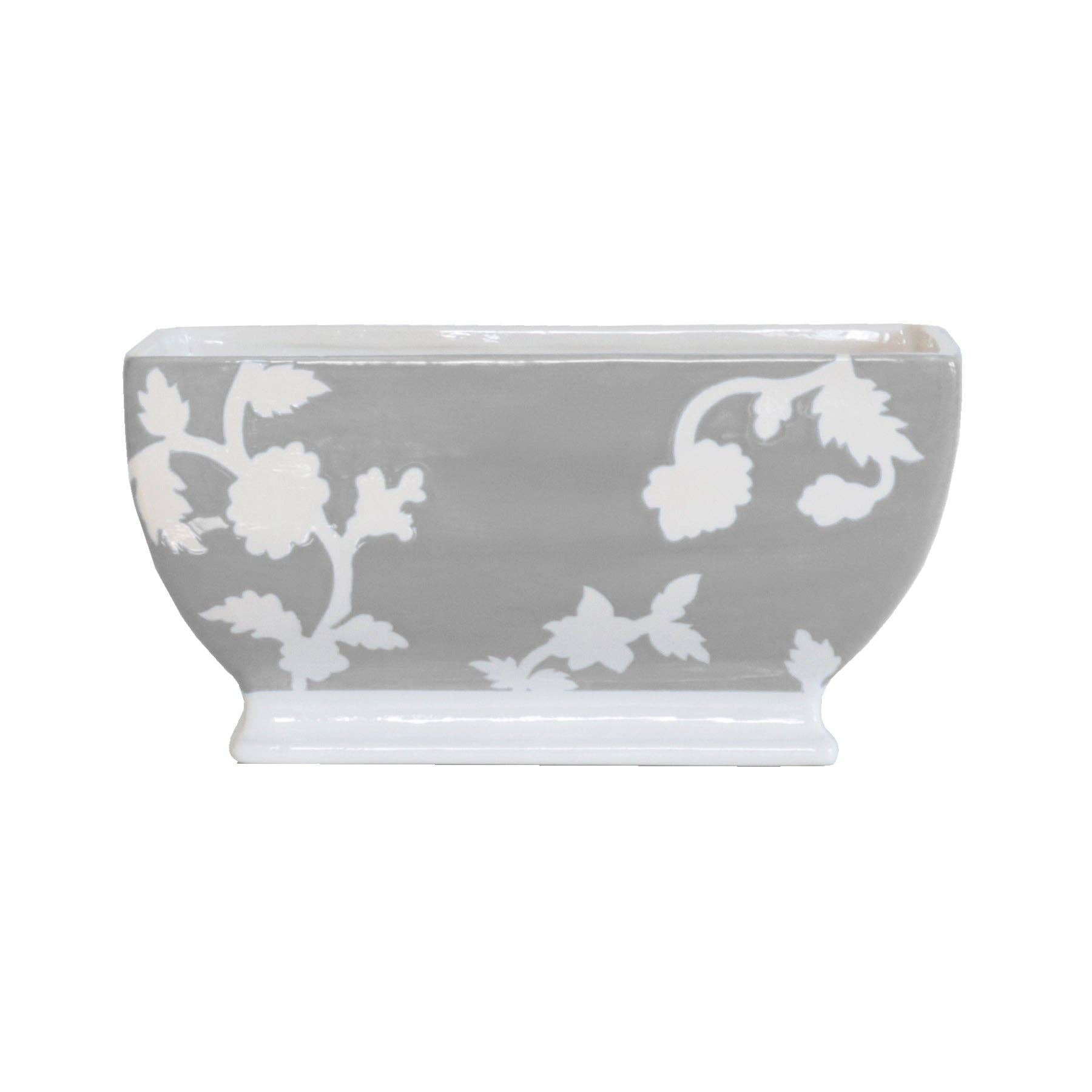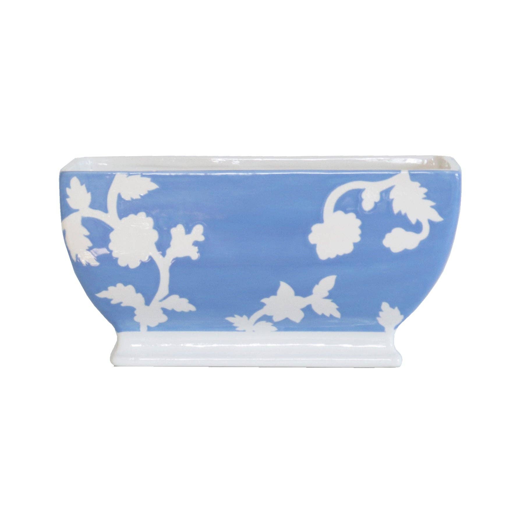 We are bringing our new favorite motif composed of elegant winding Chinoiserie -inspired botanicals to our popular planter! Our beautiful planters are a perfect new home for your favorite blooms- complete with a drainage hole. Perfect for the gardener or flower lover in your life! Each ceramic container is hand-painted by a Lo Home artist before being fired for a beautiful and durable finish, which is food and water safe. Each piece is a unique work of art. Dimensions: 10"L x 6"W x 5"H