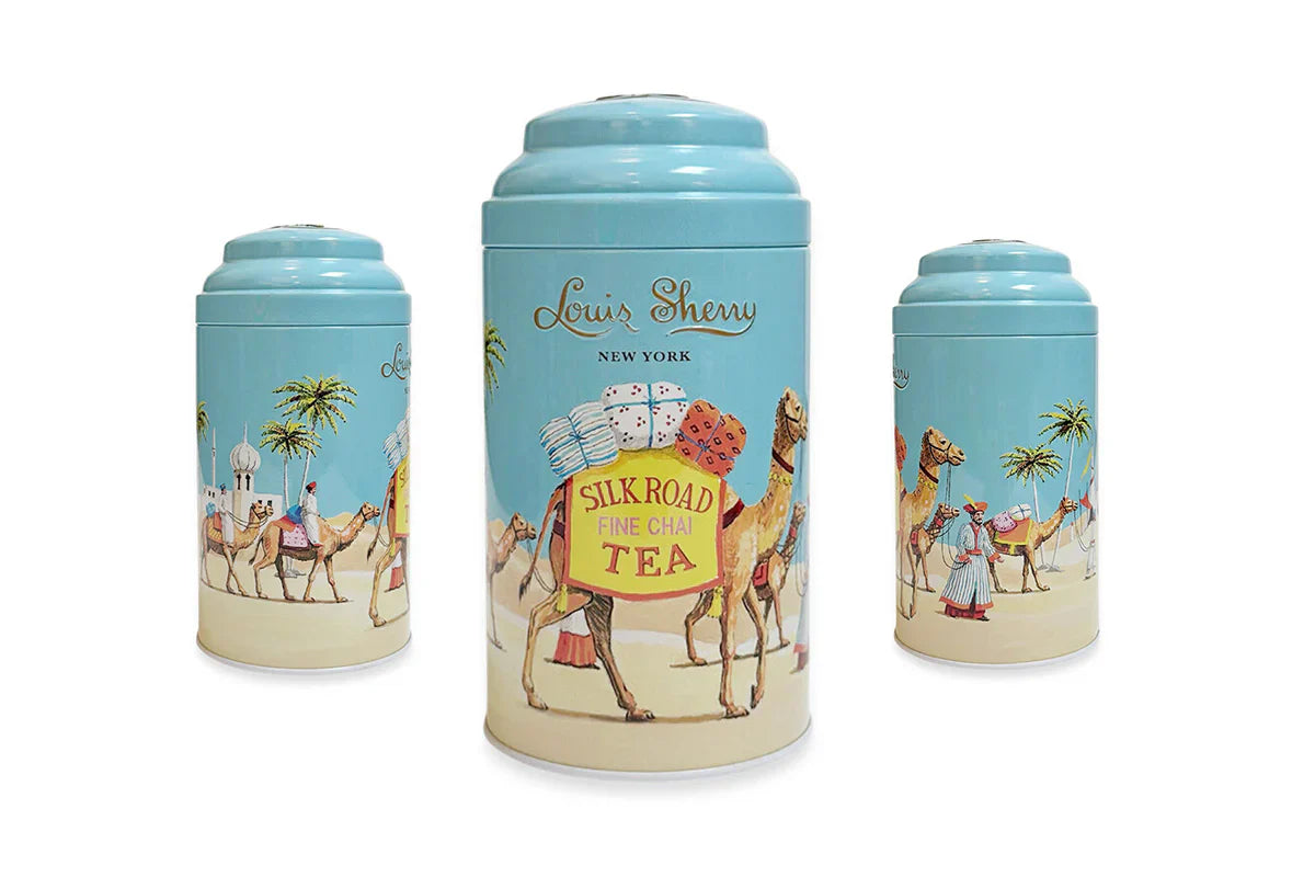 Each beautifully designed tin contains 15 pyramid tea bags and is approx. 3"D x 5.75"H. Each tin is sold separately.