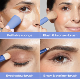 What is it? This Allure award-winning 4-in-1 makeup brush packs all your essential beauty applicators in one easy tool: Blush & Bronzer Brush, Blending Sponge (replaceable), Brow & Eyeliner Brush, and All-Over Eyeshadow Brush. Sweep, blend, blur, and line to your heart's content with this ultra-compact, travel-friendly MVP.