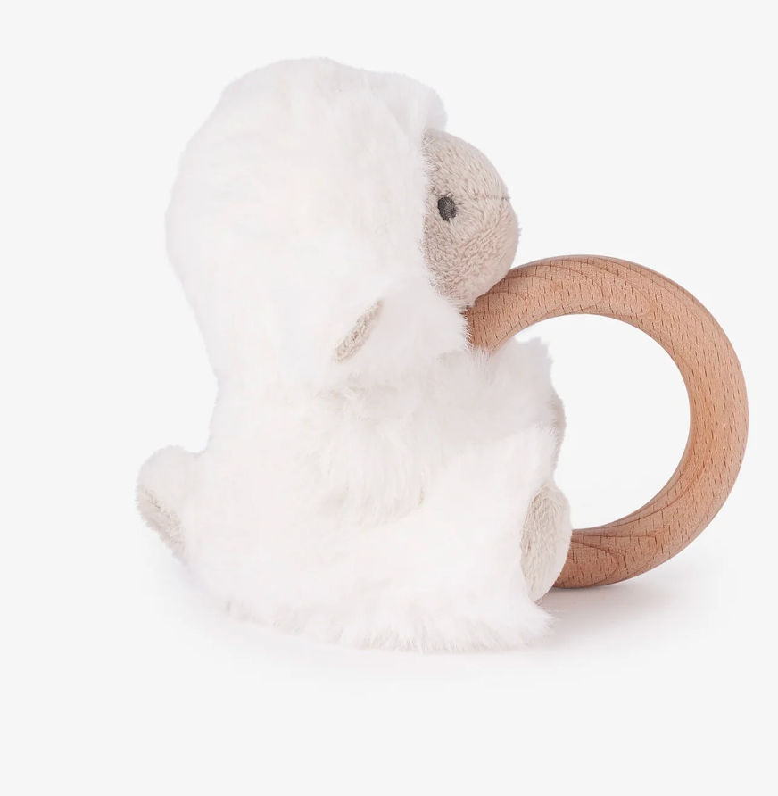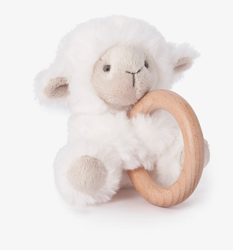 Plush Lamb Wooden Ring Rattle