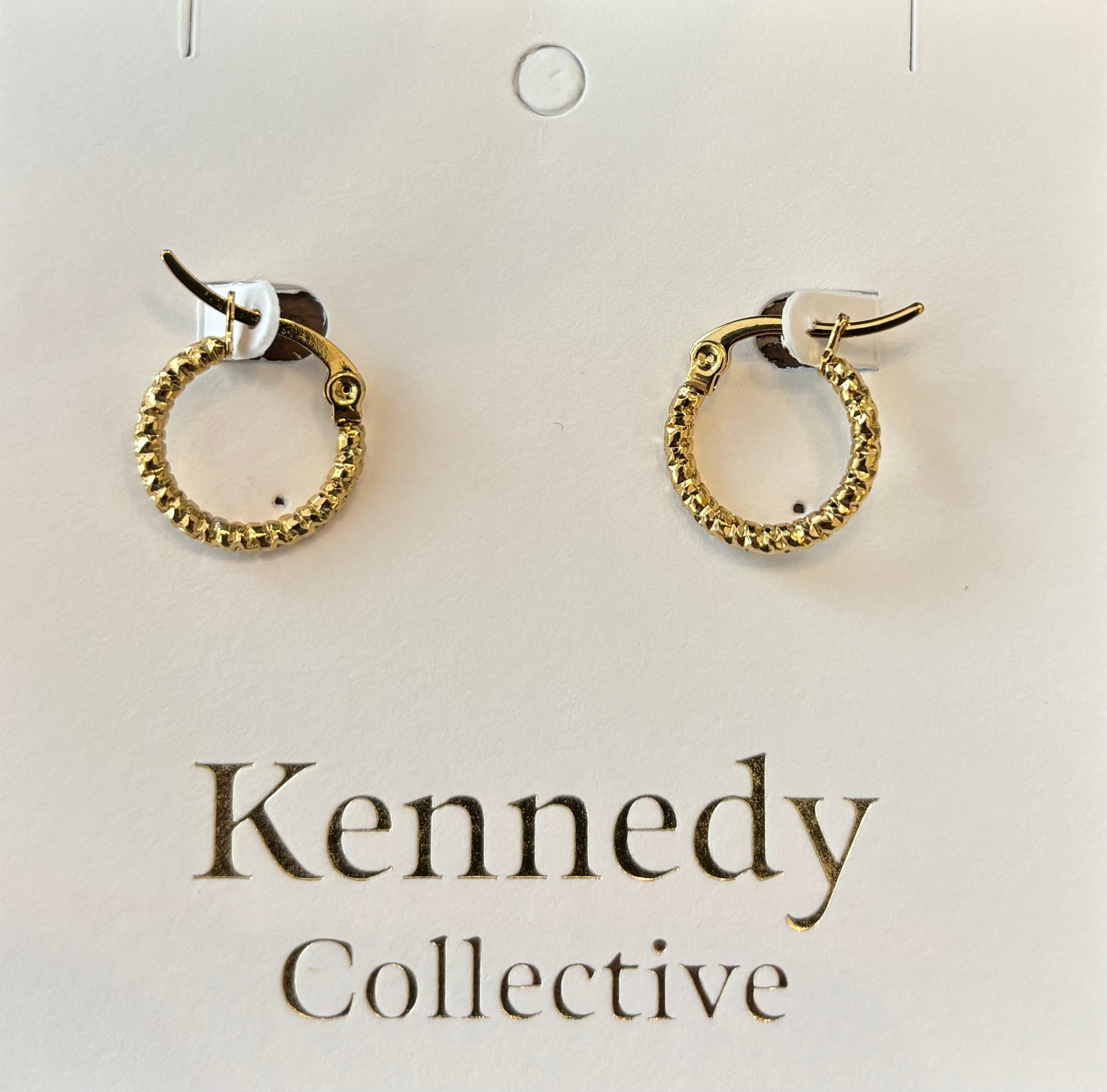 PVD Vacuum Plating 202 Stainless Steel Hammered Hoop Earrings, with 304 Stainless Steel Pins, Ring, Golden