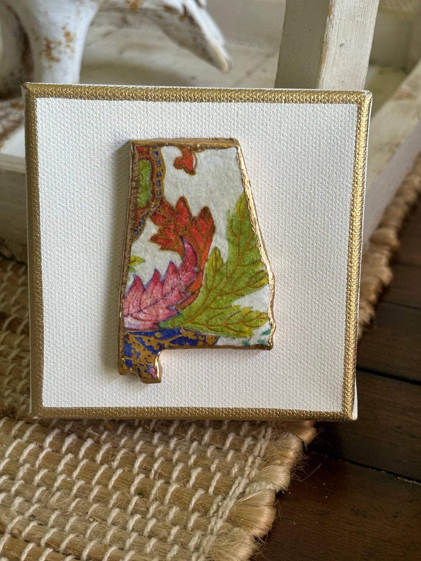 Rouge 225 - State of Alabama Tobacco Leaf Canvas Art: Package in Cello Bag with Satin Ribbon