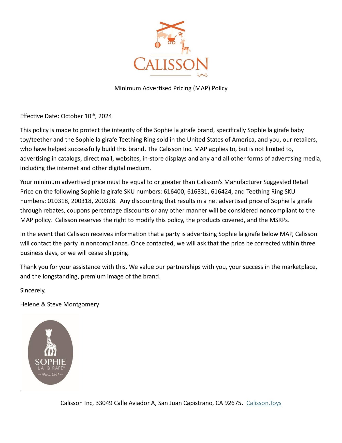 Made from all-natural rubber and food-grade dye. Light: the dark and contrasting spots all over sophie la girafe’s body provide visual stimulation and make her easily recognizable to baby. She soon becomes a familiar and reassuring object. Hearing: her squeaker keeps baby amused, stimulates his hearings, and helps him to understand the link between cause and effect. Taste: sophie la girafe is very flexible and has lots of parts for baby to chew (ears, horns, legs). She is perfect when teething and is completely safe. Made from natural rubber and food paint. Touch: sophie la girafe is perfect for baby’s small hands. She is very light and her long legs and neck are easy for baby to grip. Smell: the singular scent of natural rubber (from hevea tree) makes sophie la girafe very special and easy for your child to identify. * Please see our MAP Policy for Sophie la girafe.