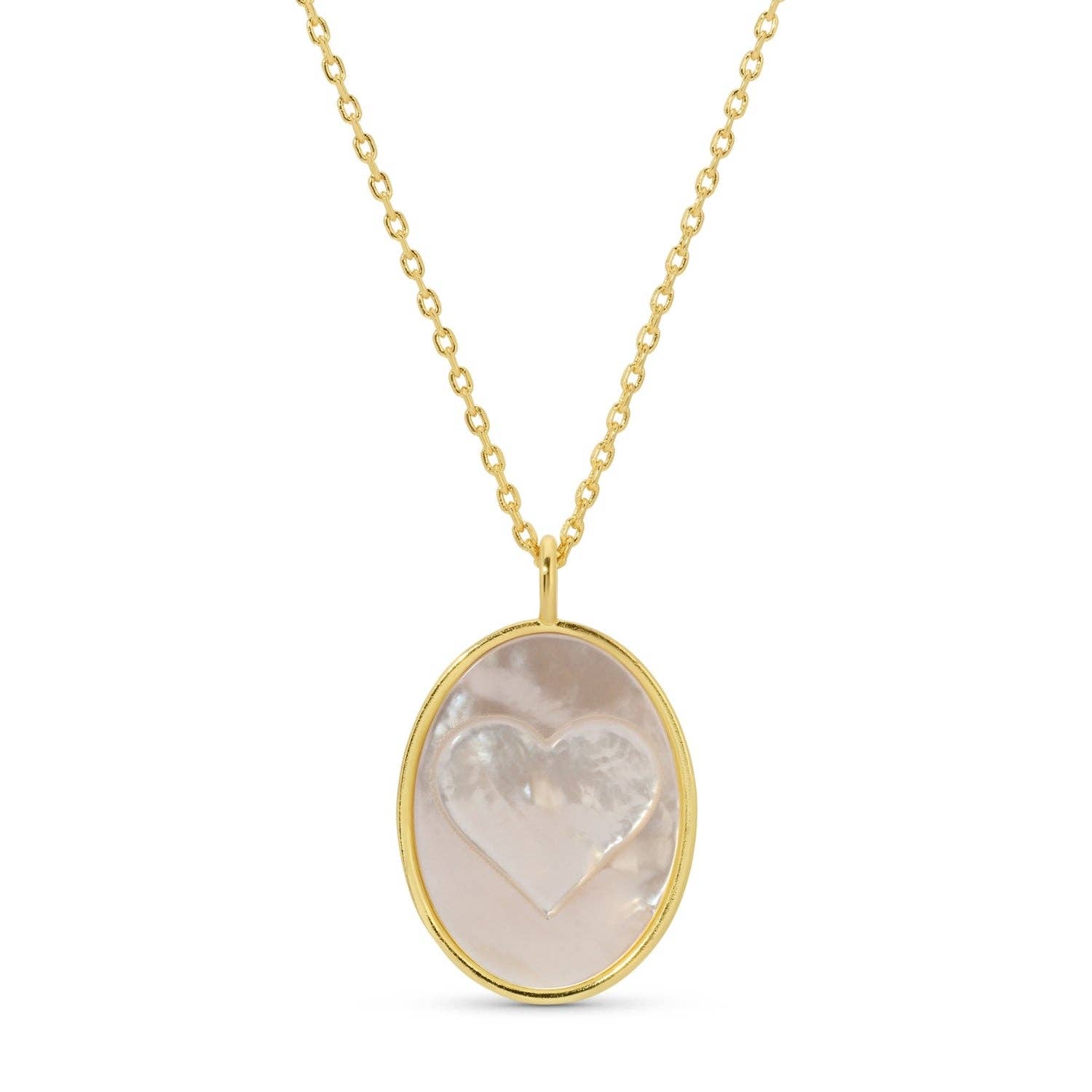 Go for the polished look with our Heart Etched Shell Pendant! 18" Necklace .7" x 1.1" Pendant 18k Gold Plated Brass Base Shell