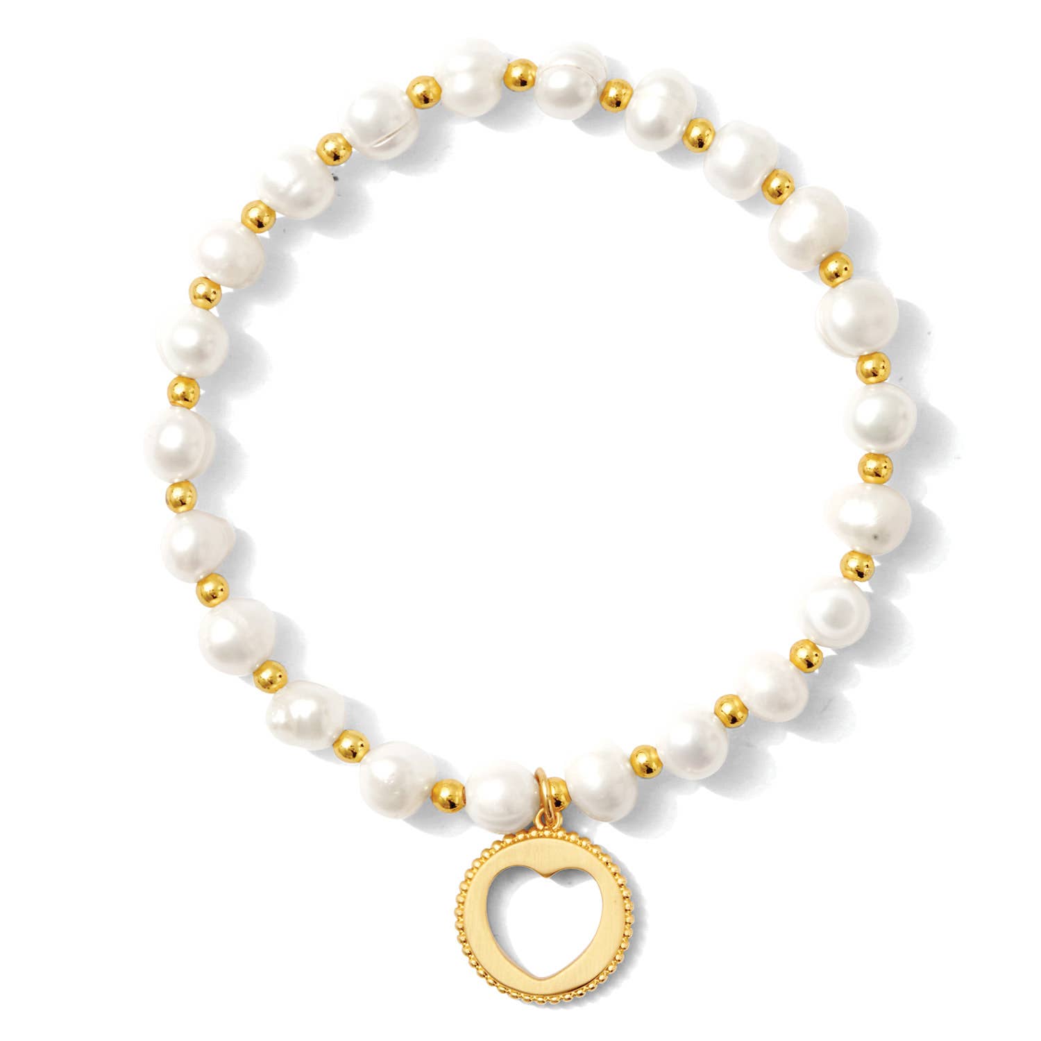 7mm pearl with 3mm bead and matte finish round charm with heart cut out -Brass -Plated -Fresh Water Pearls